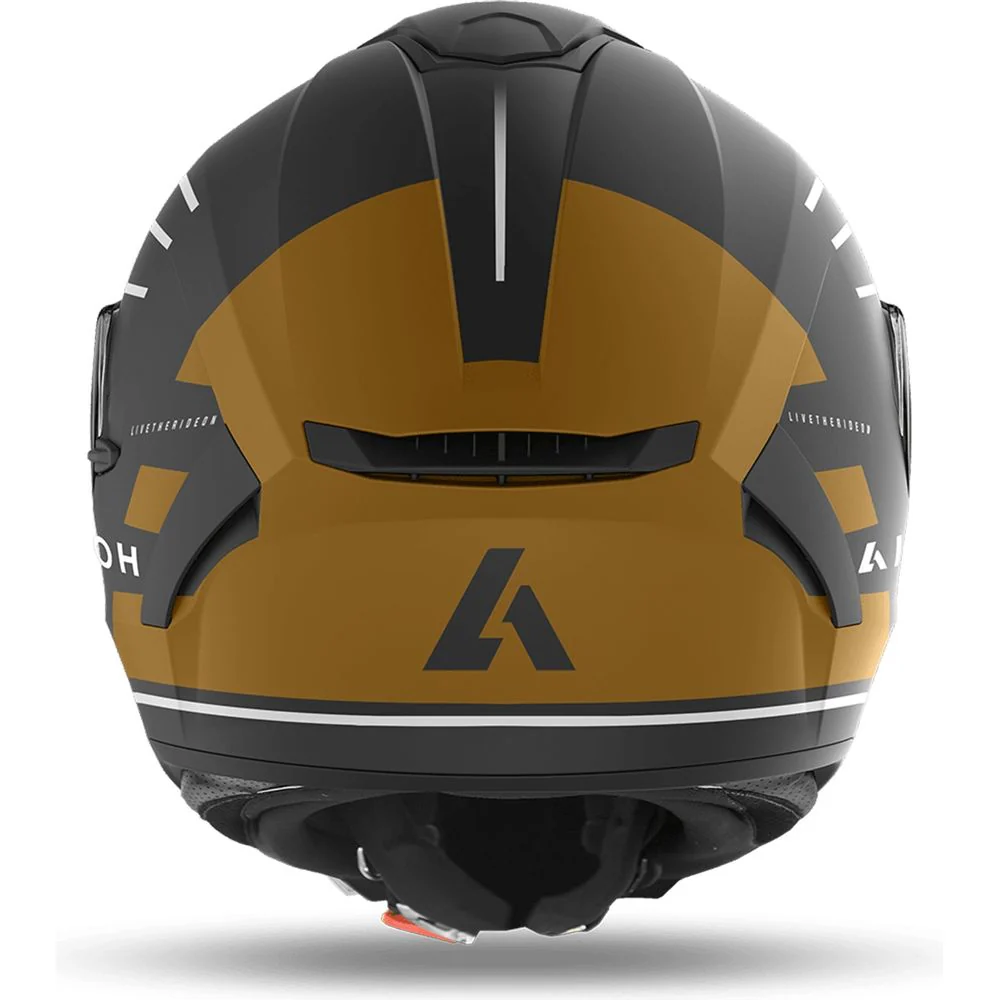 At Moto Central, a leading UK retailer for Airoh helmets, we are excited to present the Airoh Spark Thrill in a striking Matt Gold finish. The Airoh Spark full-face helmet is constructed from HRT (High Resistant Thermoplastic) and boasts an aggressive style with aerodynamic lines, ensuring complete comfort whether you're on the race track, commuting, or enjoying a road trip. As a major UK stockist of Airoh products, Moto Central offers a wide variety of Airoh helmets, and we want to emphasise that we can order any colour and size from the extensive Airoh Spark range to meet our customers' specific preferences. The Thrill Matt Gold colourway provides a premium and distinctive aesthetic to this top-of-the-range full-face helmet.